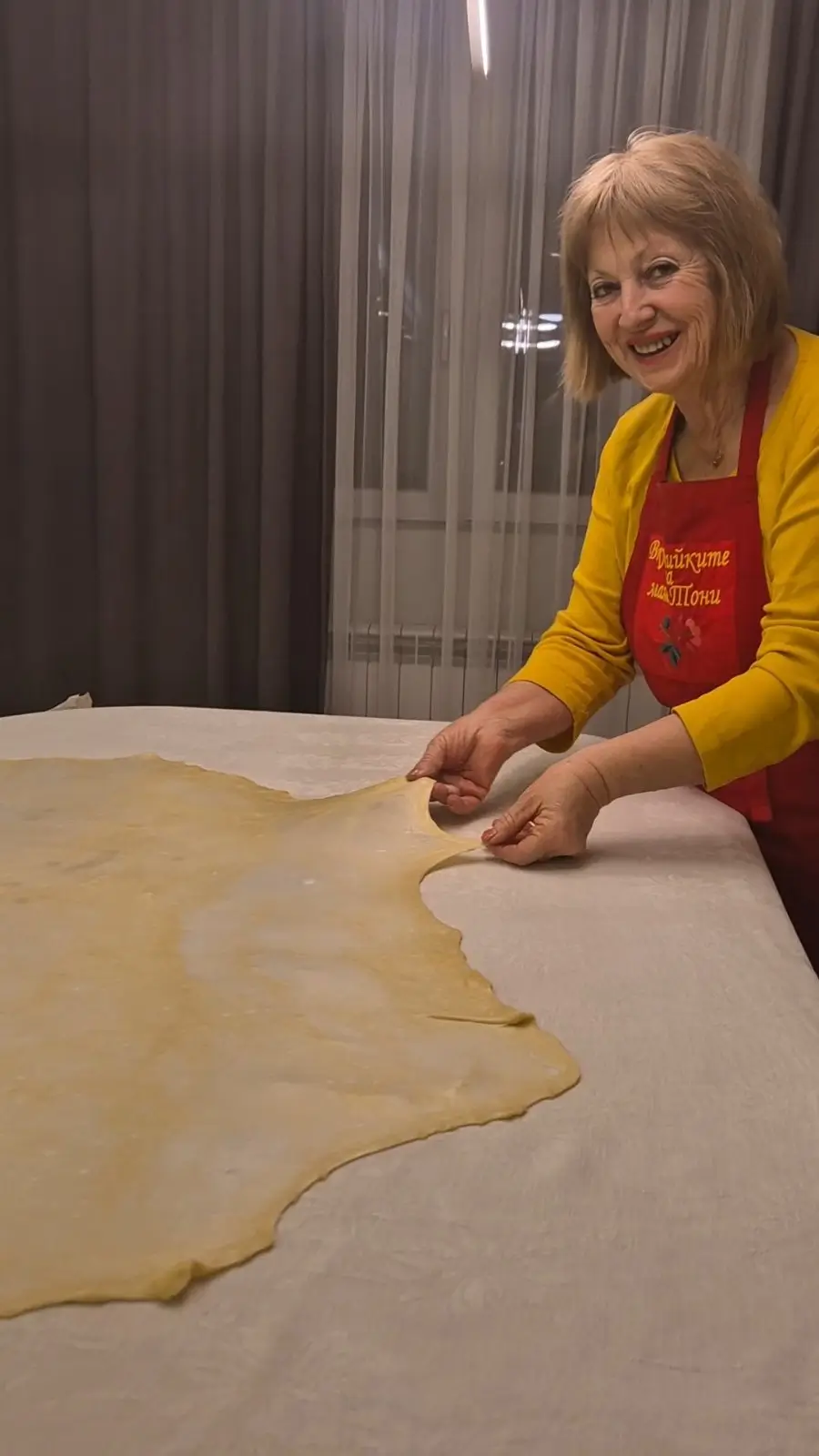 Мама Тони – позната от „Вкусотийките на мама Тони“ – готви с онази тиха увереност, която идва от години практика. Тестото под ръцете ѝ оживява. Зелените стават още по-вкусни, без да губят характера си. Движенията са точни, спокойни, предавани като знание, а не като демонстрация.